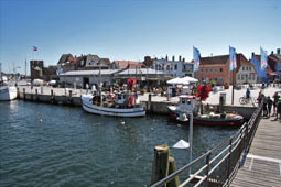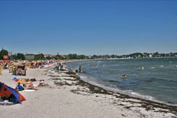 Das Ostseebad Eckernförde bietet einen großen Strand und ein Wellenbad. Ein kleinere Hafen und die Altstadt laden zum Bummeln ein.